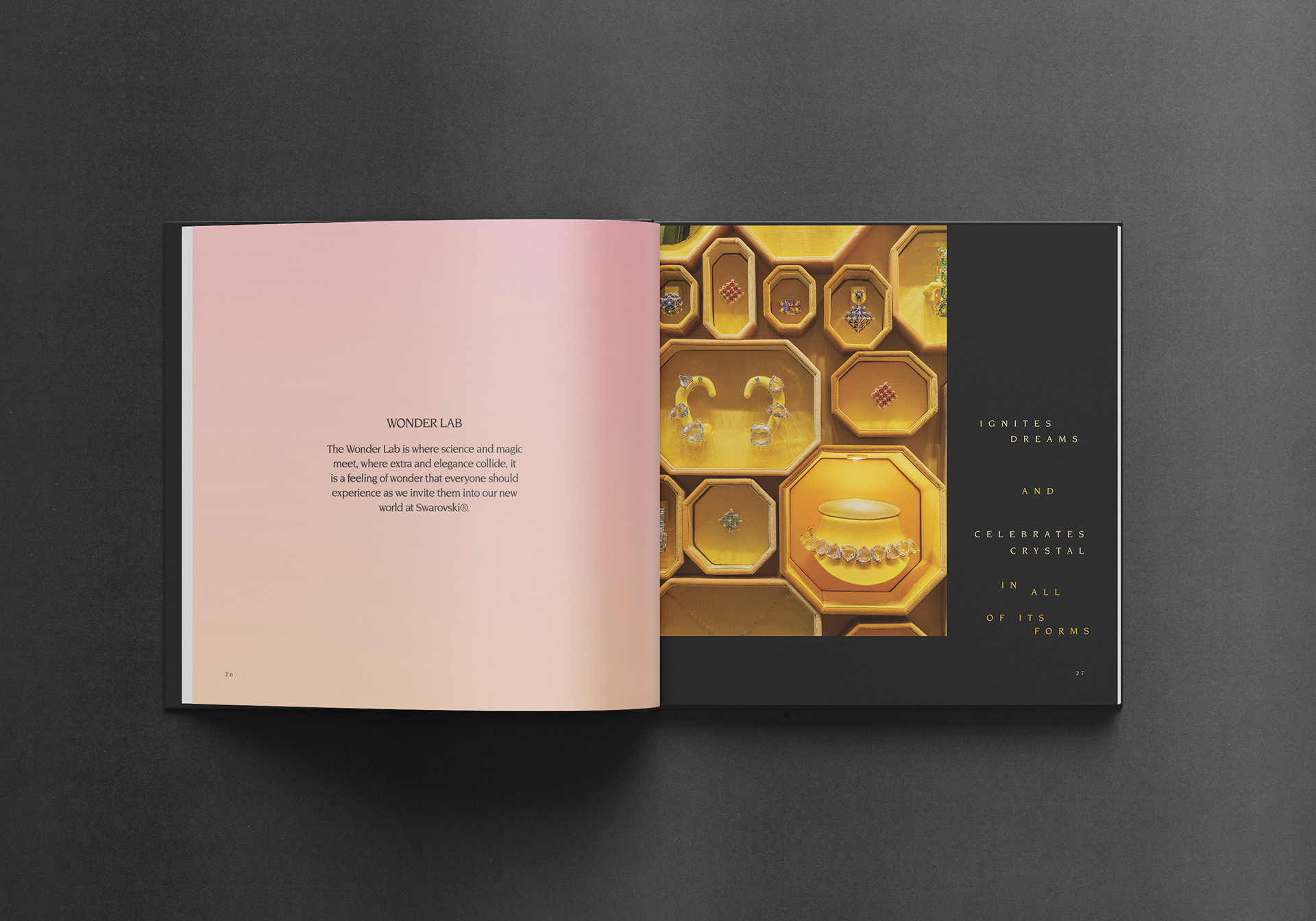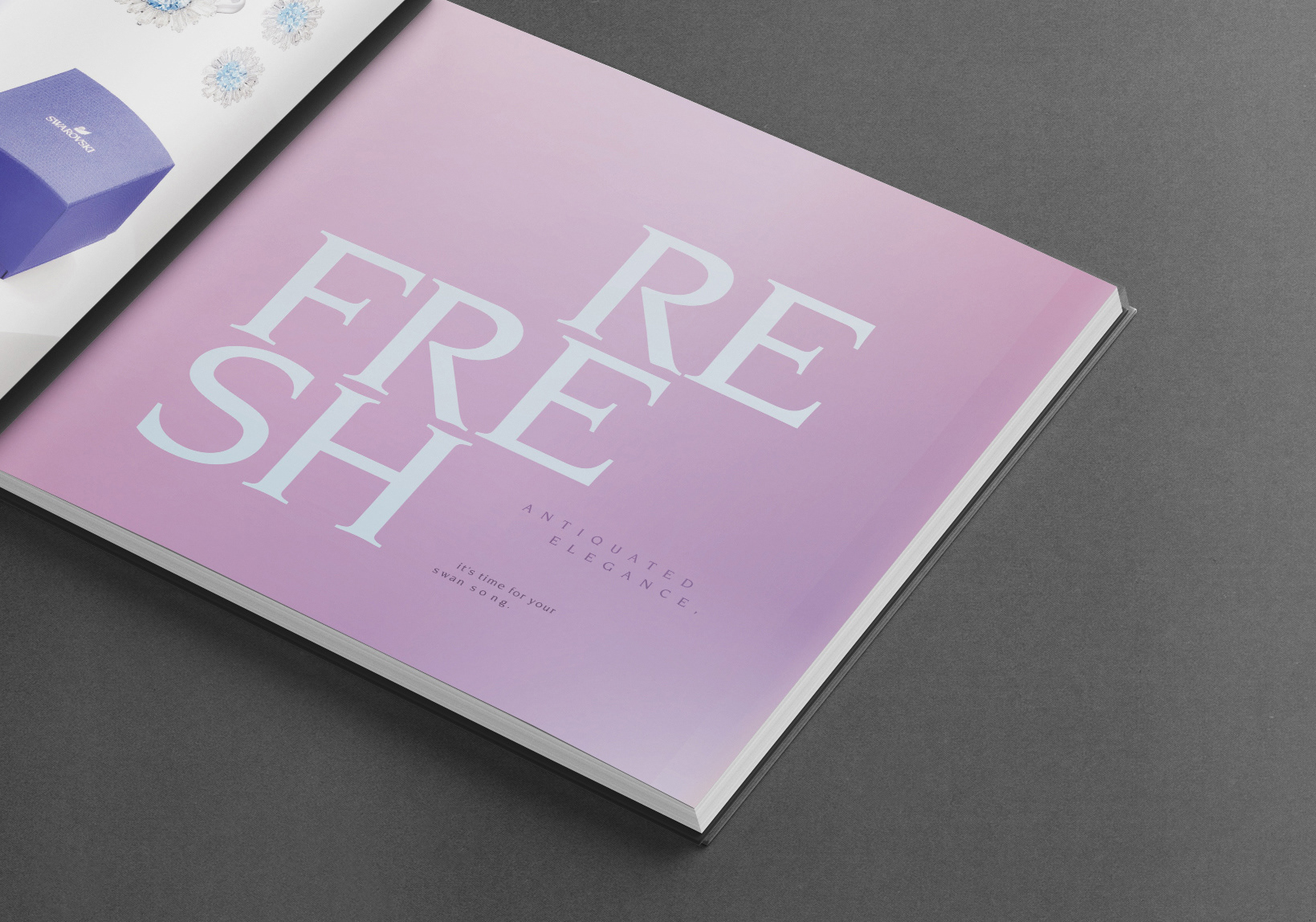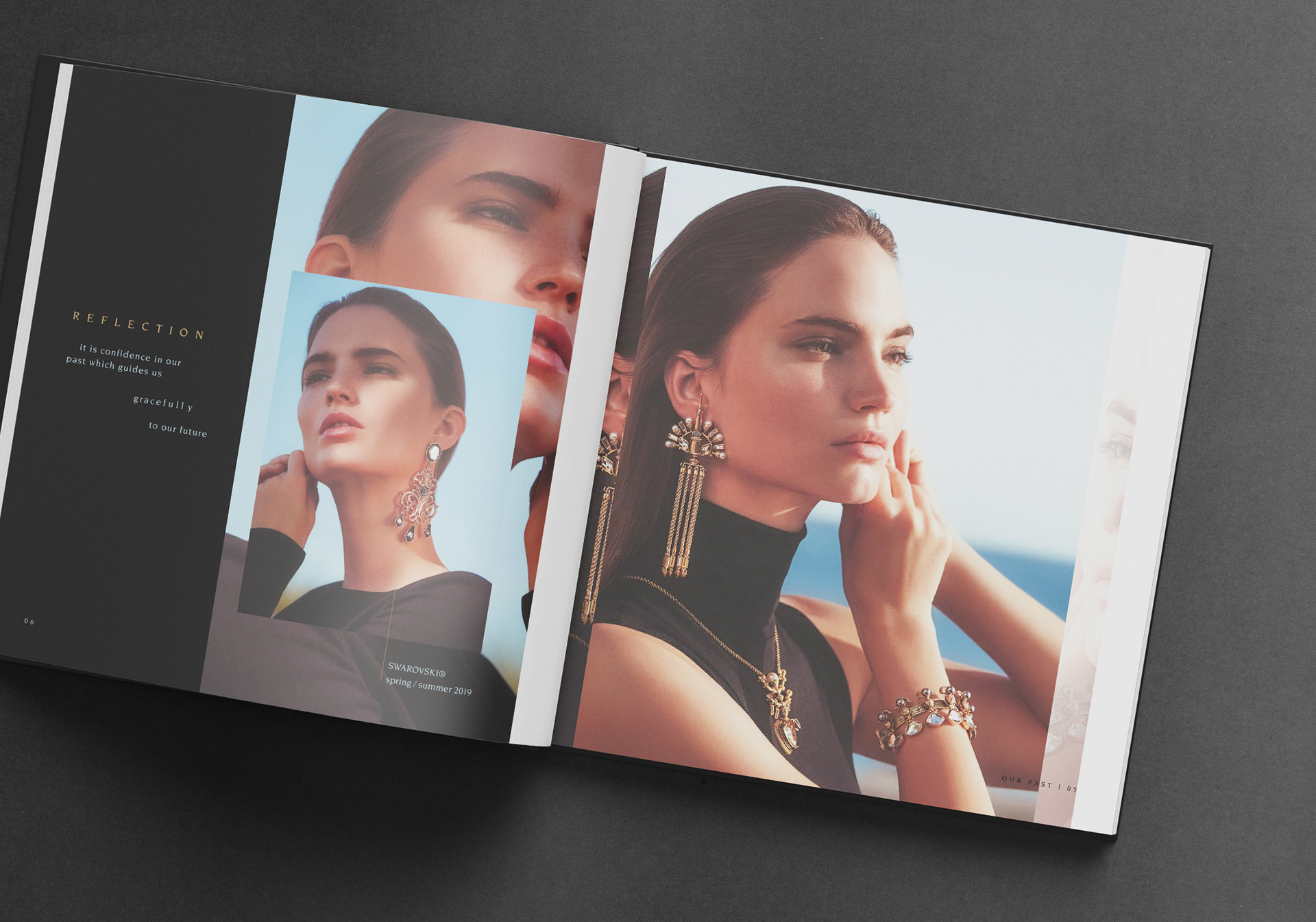 Recent changes position Swarovski as a more exclusive brand, catering to bold beauty and self-expression with vibrantly colored jewels. Copywriting, layout, and theme development helps give voice to the brand's new direction.