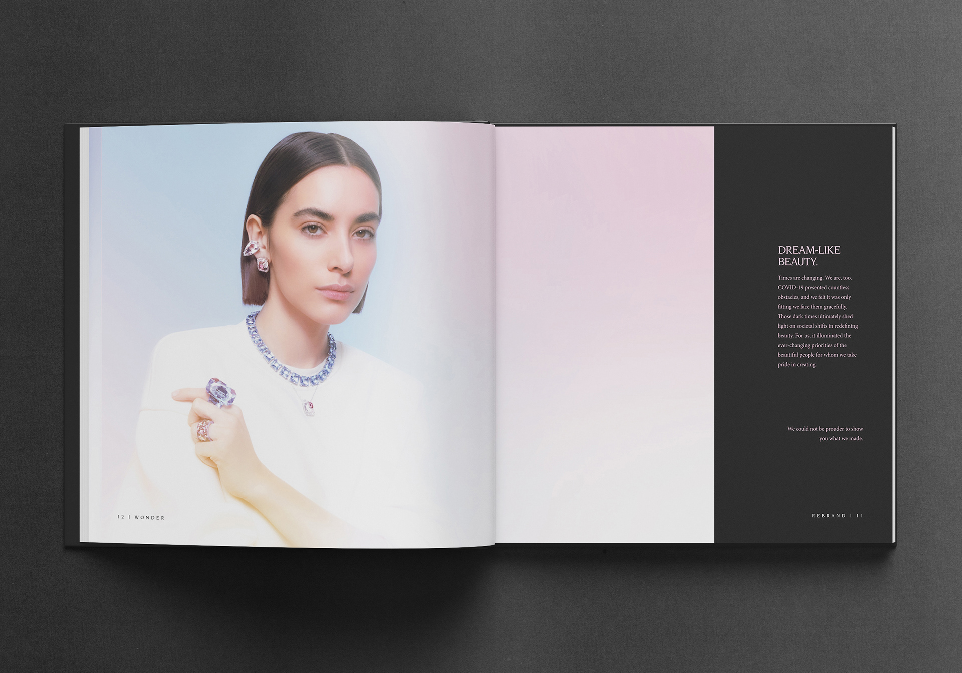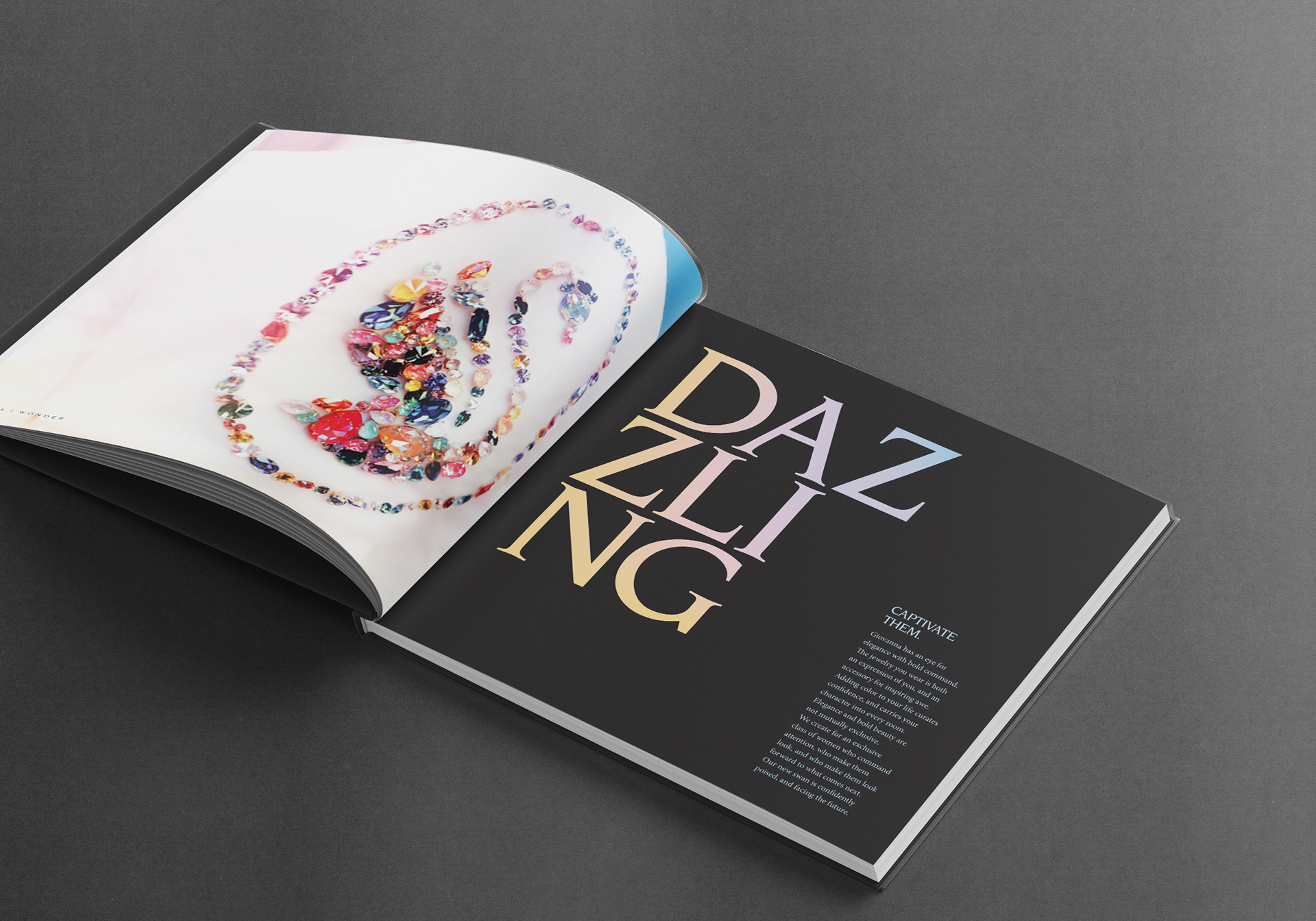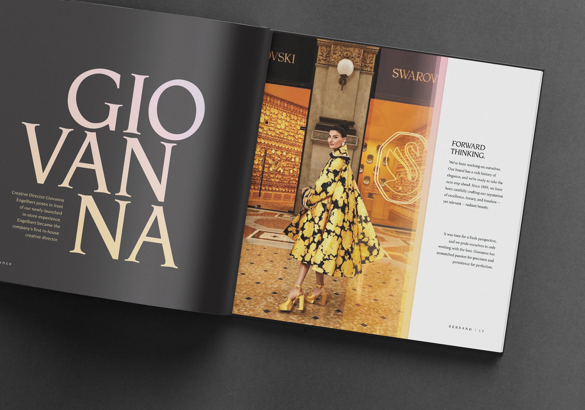 Recent changes position Swarovski as a more exclusive brand, catering to bold beauty and self-expression with vibrantly colored jewels. Copywriting, layout, and theme development helps give voice to the brand's new direction.
